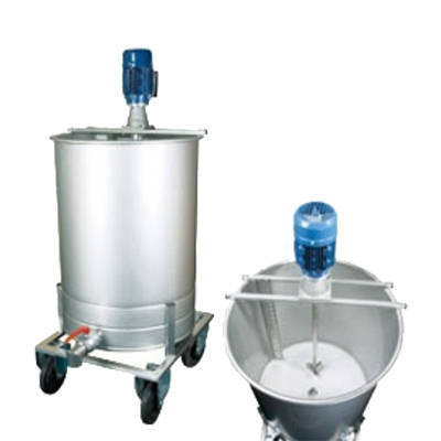 Устройство состоит из емкости изготовленной из нержавеющей стали, внутри оборудовано смесителем, также миксер оборудован четырьмя колесами, два из которых установлены шарнирно. Крепления колеса из нержавеющей стали.